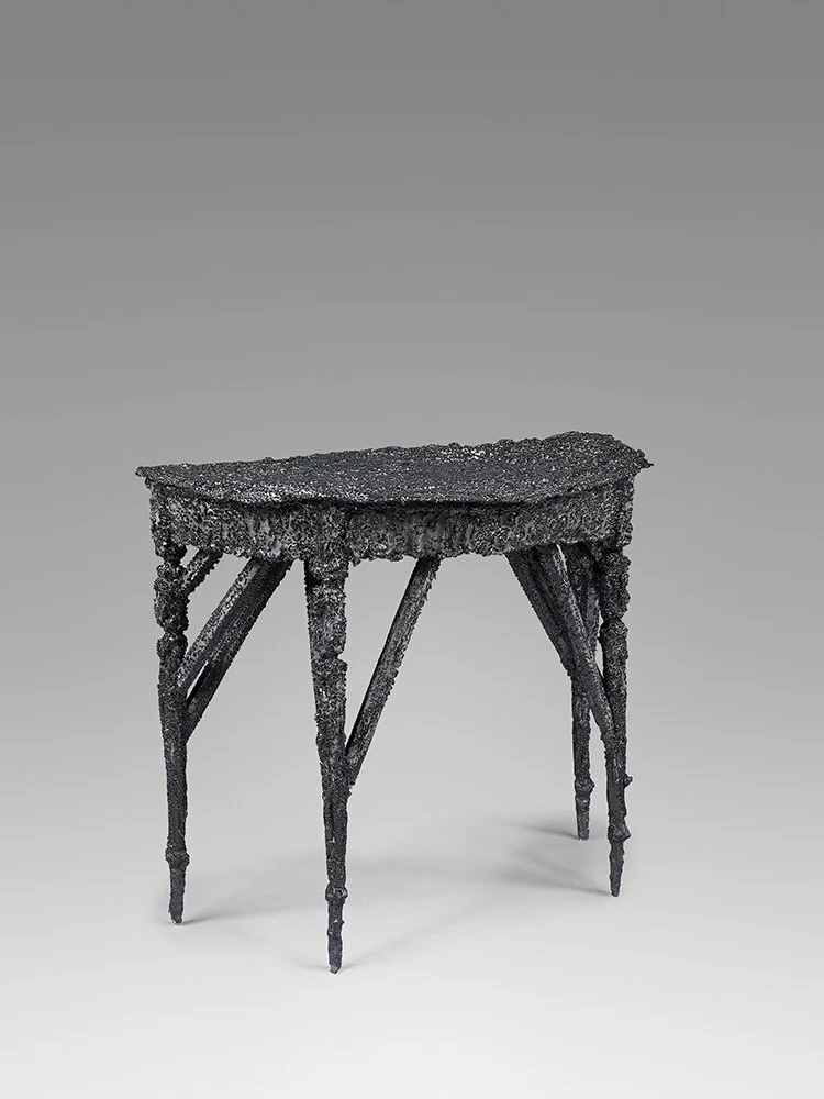 IMITATION OF A LATE 18TH CENTURY TABLE IN THE ADAM STYLE, WITH PAINTED FRAME AND LEGS AND INLAID SATINWOOD TOP 2017Hand built ceramic, glaze90 x 40 x 79.5cm Enquire
